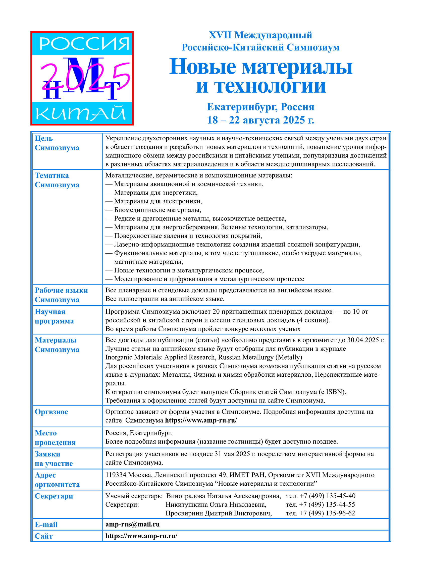 Основная цель журнала — популяризация научных достижений и исследований в области разработки, создания, получения и обработки новых материалов для различных отраслей науки и промышленности.